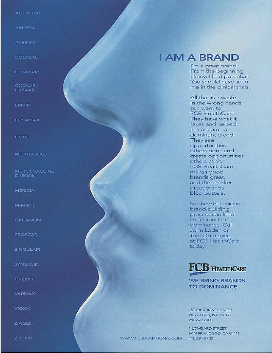 Personalize the unique brand-building ability of FCB Healthcare and improve their profile in the healthcare space as well. The first-person approach communicated that: if a brand could talk, they would choose FCB Healthcare.